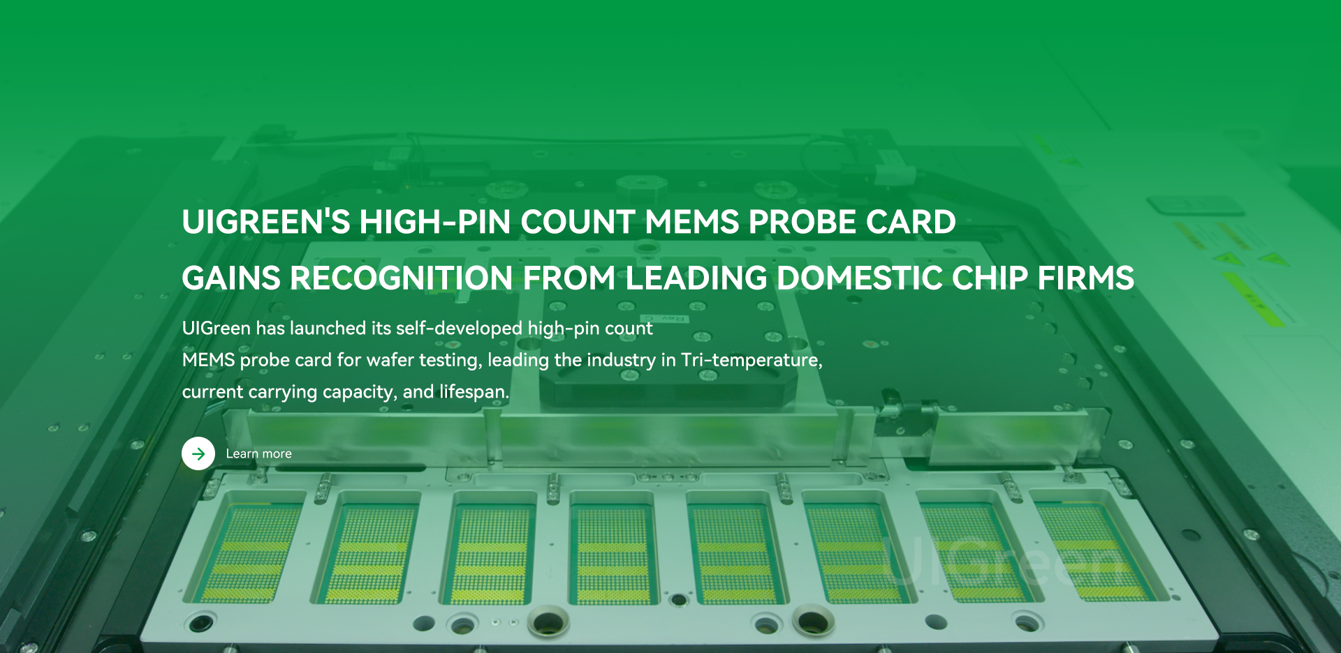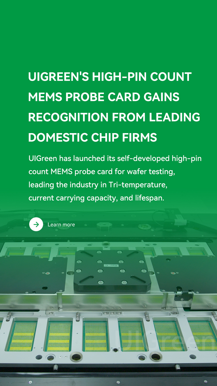 UIGreen is a national high-tech enterprise specializing in micro precision manufacturing and a provider of advanced semiconductor testing interface products. The products are widely used in multiple high-end manufacturing fields, such as MEMS, semiconductor chip testing (Memory/ AI/ CPU/ GPU), automobile & medical.