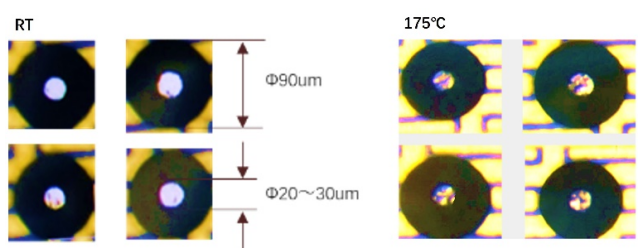 Forms highly accurate Contact Marks for reliable wafer testing.UIGREEN MEMS probe forms a stable Contact Mark even in harsh conditions of 175℃.